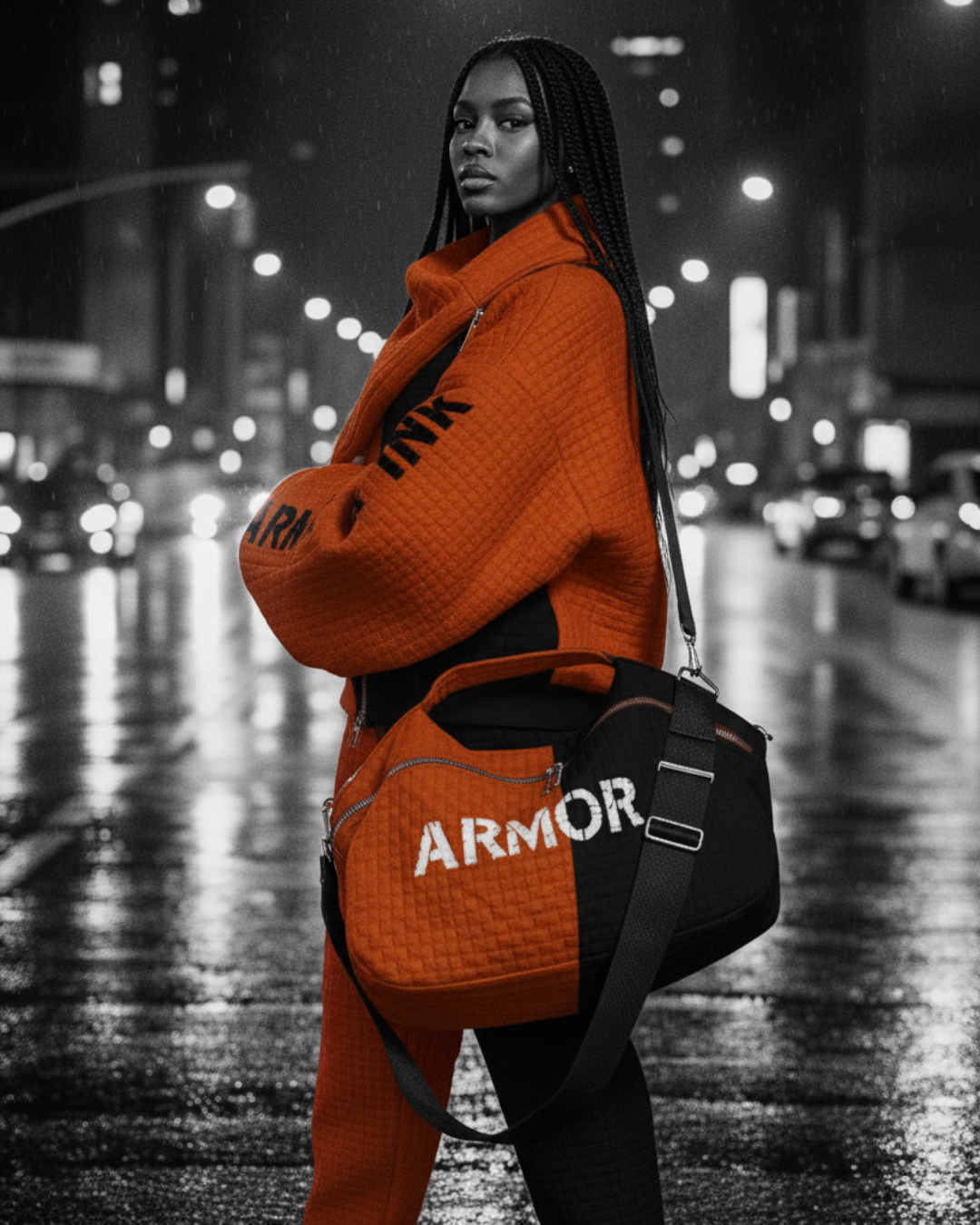 Changing the Narrative transforms outerwear into wearable armor. This handcrafted quilted jacket features distinctive diamond-pattern texture throughout, creating depth and dimension that elevates it beyond ordinary streetwear. The bold asymmetric zipper cuts diagonally across the body, while dramatic "ARMOR & INK" sleeve branding declares your presence with unapologetic confidence.